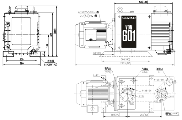 采用高吸气压强也能稳定运转的强制供油方式和氟橡胶密封件。选用油雾过滤器、油返回机构后,就能在大气压以下的全压强范围内连续运转。