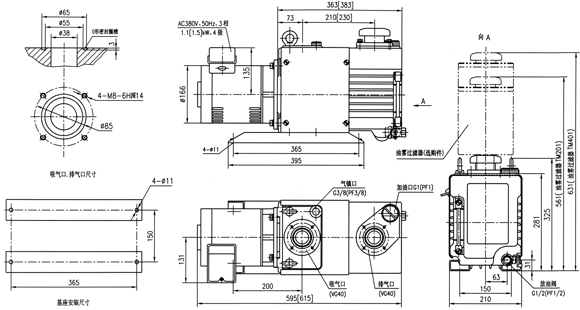 采用高吸气压强也能稳定运转的强制供油方式和氟橡胶密封件。选用油雾过滤器、油返回机构后,就能在大气压以下的全压强范围内连续运转。