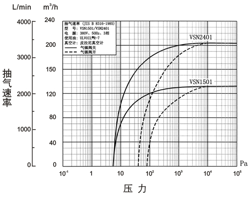 由于采用了极限压力时降低运转声音的结构,VSN1501、VSN2401的噪声能低于74dB(A)(到达极限压力时并带有油雾过滤器、在离泵1米处的测定值)。