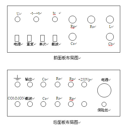 脉冲波形的波前、波尾电阻由标有Rs、Rp的波段开关调节。调节范围有20档,需要外接电阻时,可将波段开关放在“Ext”的位置上,电阻接在仪器后面板相应的接线柱上。
