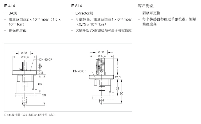 IONIVAC IE 414和IE 514超高真空传感器